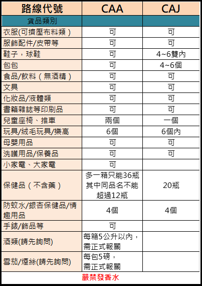 1.酒類是CAY路綫和須做正式進口報關,詳細請參考官網【疑問解答 H.台灣進口報關】