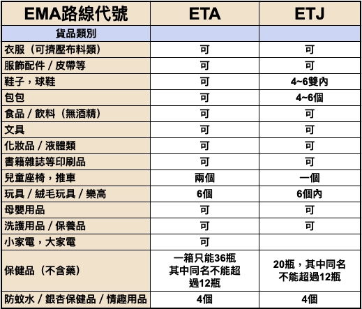 3.酒類和菸類是ETY路綫和須做正式進口報關,參考官網【疑問解答 H.台灣進口報關】