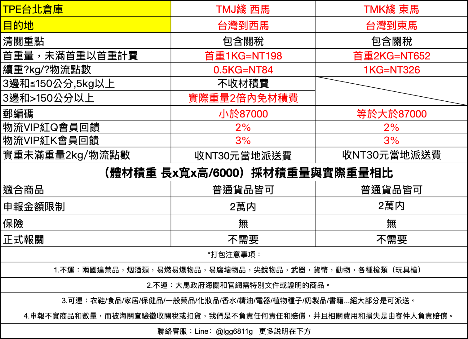 1.包含:倉庫基本,出口報關,航空費燃料稅,進口簡易報關,全馬宅配派送