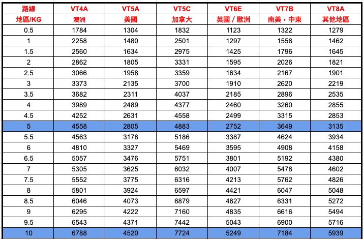 *採材積重量與實際重量相比,以較重者為計費重量