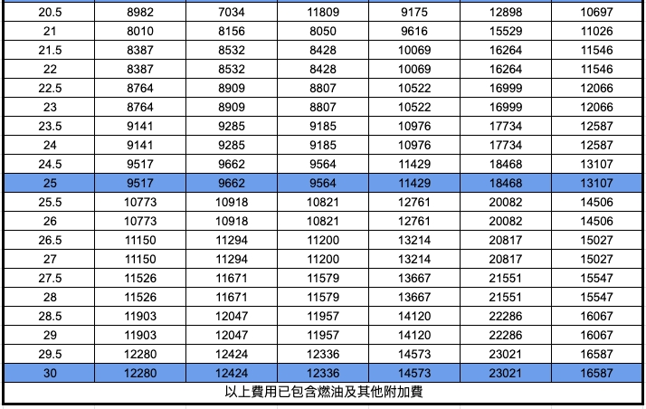 1.目的地如偏遠地區會加收台幣1500元附加費。