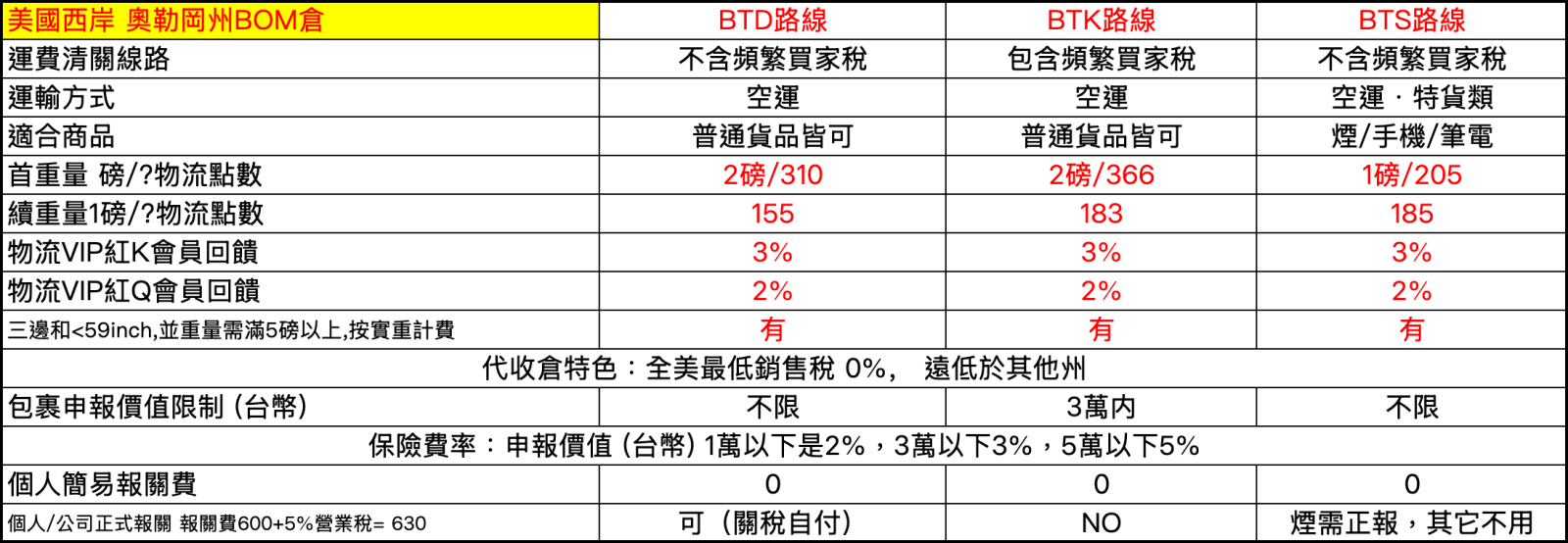+美西奧勒岡BOM免稅州→空運台灣→派送全台